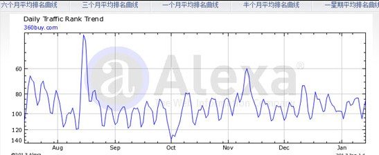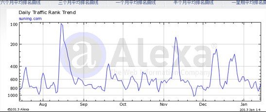 苏宁易购6个月流量排名波动(腾讯科技配图)