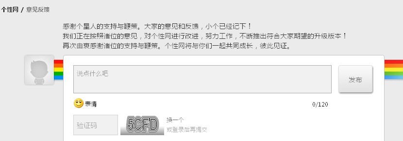 4、在个性网中有专业的反馈平台,可以很好的让用户讲出网站的不足来进行修改。