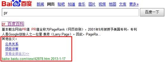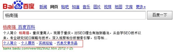 百度搜索引擎算法的调整是网络营销人员最为担忧的事情,其原因是算法的调整或多或少对网站整体流量有影响,尤其是不敢肯定网站是否存在作弊嫌疑的优化人员,对自己不够自信,那么这就更加需要提高自身能力,其次是为了更加利于百度搜索引擎以及用户的双重体验,在实践中需要提高洞察力,提升对数据的敏感度,第一时间掌握百度搜索引擎算法变更的动向。而百度搜索引擎算法的调整一切都基于用户体验考虑,百度中整合搜索更是体现了这一观点。那么,百度对整合搜索进行了那些拓展以及完善呢? 1、 百度百科 百度百科上进行了逐渐改进以及完善,并且得到广泛应用,尤其是迷你的sitelink,其中百科中sitelink数据多为目录结构标题,当百科知识存在多义词时,sitelink则会竖行展现其它含义。在百度整合搜索过程中,百科已经早已列入到搜索引擎结果页面中,并且获得的权重较高,整体排名效果较为理想。