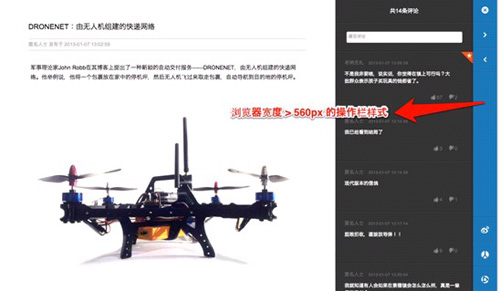 IE10优化版的cnBeta 日前,CSDN记者专访了逻辑适点商业传播设计公司项目总监邹颂兵(以下简称Saber),他们和cnBeta合作,在IE10下,完全运用HTML5技术开发出了支持触控、瀑布流式布局的新版本。给国内用户带来一种全新的新闻浏览体验,同时也希望能够给业界HTML5的运用提供一些参考。 CSDN记者:这个项目如何分工,开发周期多长,如何划分开发周期?开发环节中遇到了哪些问题,其中哪部份最耗时?如何解决的? 邹颂兵:项目开发团队共三人,一个主开发,一人主设计,一个统筹整个项目,敏捷开发,快速迭代。分工上主要有项目管理、交互设计、UI设计和开发四个部分。开发方面从最初的原型搭建到网站上线总共是一个半月的时间。开发周期是这样划分的:原型搭建和页面元素效果实现1周;后台数据处理3天;前后台数据联调(处理后台数据并显示在前端)3天;十大文章实现1周;调试2周。 开发中最费时的是针对不同的平台的调试,我们遇到的问题可分为三类: 1). 不同分辨率的碎片化问题 不同的屏幕分辨率需要设计不同的信息呈现方式,在页面布局和功能上都要进行相应调整,这过程中会有很多繁杂的问题,比如当浏览器宽度小于560px的时候,文章操作栏占据太多屏幕空间,因此在应该针对这种情况重新设计它的功能和交互方式(如图1-1, 1-2所示):