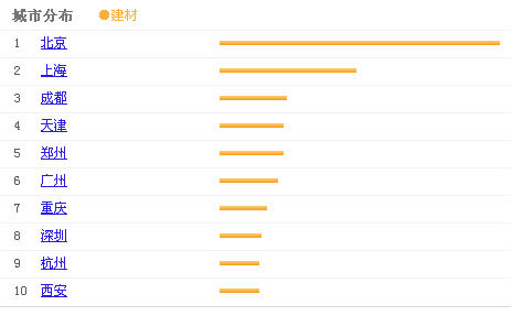 城市分布图进一步对市场进行了细分,不少企业盈利模式必须采用地面营销和网络营销相互结合,需要考虑到用户销售模式以及用户搜索行为,无论实体店还是运营网站的侧重点都必须进一步把握,了解城市的分布图尤为重要。建材行业中,用户关注度在重庆为第7名,可见用户群体也不少。 百度指数:建材(重庆)
