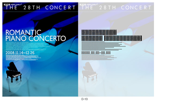 图(D-13),这种字体排版的组合方式,既有横向韵律又有纵向韵律。横向上看,句子的字号对比,重-轻-微重-再轻以及单词间的节奏,纵向上看,句子长短的起伏和画面所体现的情感相呼应。