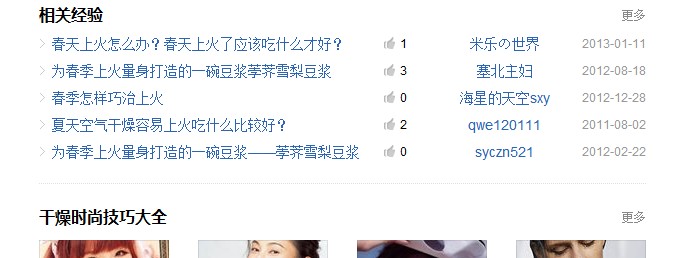 从上面的源码看,百度经验对经验里的图片采取了全部一样的ALT备注内容。“春季干燥吃什么容易上火”备注了全部图片。这也是在百度站长工具里对我们网站提示的:相关图片缺少文字说明。 内容页结构设置相关文章推荐: