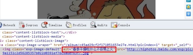 显然,从上面的代码中,我们看到百度经验的头文件可以说title目录明确,keywords部分控制在两个词,内容上则选取了一个是标题文章,一个是长尾关键字。通过查看其它经验,也是同样的情况。即标题+标题核心关键长尾词。description部分则选取的是这篇经验的导读内容,字数控制在110内。 接着我们看到它对于图片的描述: