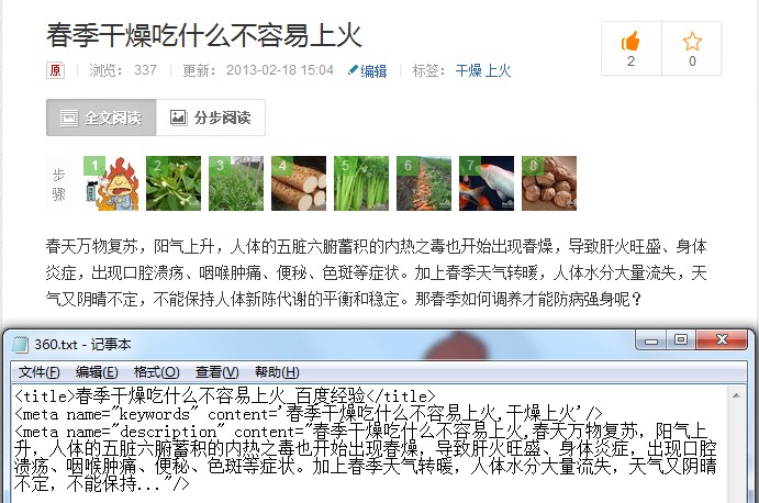 上面现象促使我去分析百度经验它的网页源码。 首先看到的是这条经验的网页title头文件