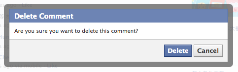 Facebook 中删除留言的对话框也是将「是」直接替换成「删除(Delete)」的字眼,仔细想想,我们其实还真的没有去注意过这些对话框的内容到底写些什么,但是我们一直都可以轻松的做出正确的决定。