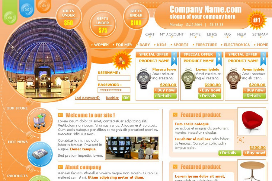 整个页面是利用深橙和浅黄色的搭配来展现的,使页面看起来更加的温暖,深色的铺垫,黄色的文字,达到一种突出而不突兀的视觉效果,赋予了网站生命力。 三.电子商务网站案例分析 推荐案例:橙色+卡其色+绿色
