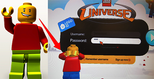 10. 乐高旗下的一款游戏 Lego Universe(已关闭)的登录界面更是有趣,在用户输入密码的时候下方的乐高机器人会从正常状态(左侧所示)变为捂住自己眼睛状态,太有爱了。