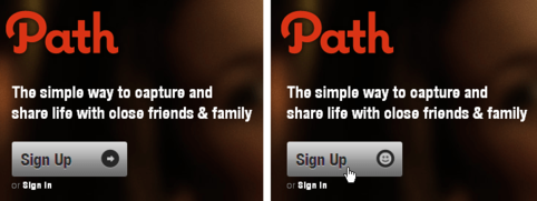 9. Path 网页版(旧版)上的注册按钮点击后在跳转过程会呈现一个笑脸,类似效果的还有 Cloudapp 的登录页面,下图所示。