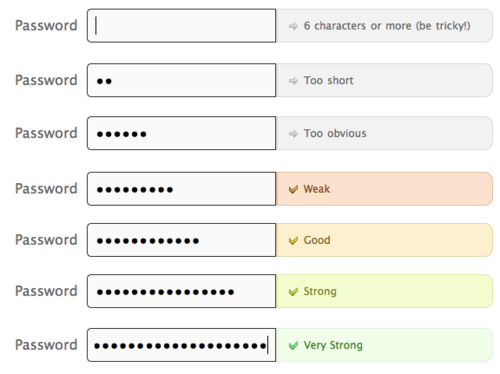 类似的还有 Tumblr 的注册页面以及 Twitter 注册页面,只不过将具体时间改为了条状与颜色提示,红色表示危险,绿色表示安全。
