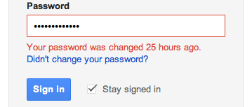 4. Gmail 登录页面输入旧密码会提示用户上次更改密码的时间。