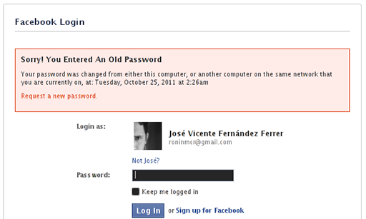 5. Facebook 在密码提示这一点上做得也不错,不仅可以像 Google 那样当输入旧密码会提示上次更改密码的时间,还会将用户名栏直接变成用户的帐号基本信息,想借此给你一点提示。