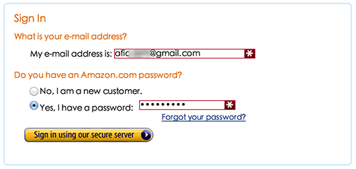 2. 而另外一个比较另类的 Amazon 为了达到“让注册用户易登录,让新用户易注册”的目的,将注册用户和新用户合二为一,如下图。