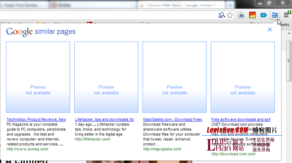 优点:能够突出小站点。 缺点:那些小站点不能保持存在,没有相似度评分功能。 Google Similar Pages [Chrome]