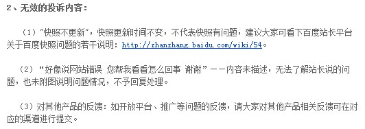 这张图是有时候你会觉得收录仿佛在大起大落,但是实际上这些收录是不是和site出来的相差不多呢?其实呢,如果相差很多,就说明了一个问题,那就是这个网站的页面有太多太多的都是页面质量不高,然后虽然可以看到真正的网站收录数量,但是这些收录数量都不会参与排名竞争,也就是候选页面,这样一个细致的对比都可以很明显的看到这个网站的状况,内容的质量情况。 3)确实为误伤,那么投诉是必备的过程 从百度去年的那一次算法更新开始,开放了投诉的渠道,因为误伤的确是存在的,如何善于用投诉来解决自己的问题呢,那就是在投诉过程中尽可能的写清楚自己的网站的情况,一般而言,只要你写清楚自己的网站属性,都是会得到分析并且参与到改善之中的,如图