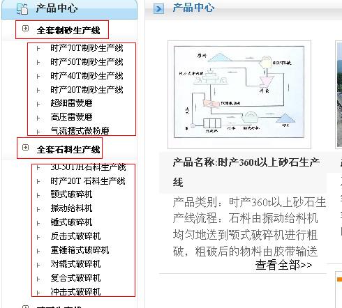 这样细致的分类能够让用户和管理员都很好分辨哪种产品才是他们需要的,并且这样做还有效加强了网站的内链,使整个网站内容如同蜘蛛网一样连接起来,对提升网站的产品词排名也是非常有帮助的,所以这一点是工业产品不可以忽略的站内优化细节。 第二点:编辑网站内容需要技巧 编辑网站内容也是工业产品站的站内优化细节,但是工业产品站的文章源并不好找,而且很多网站都是被人重重复复采集过的。比如“砂石生产线生产步骤”,“砂石生产线的优势”等等的文章,这样的文章即使放上去也不会有用户浏览,就谈不少会有什么转化率了。那我们应该撰写什么样的文章来填充我们的网站内容空缺呢?笔者也咨询过不少比较厉害的网站编辑,他们认为,编辑工业产品站内容时候应该注意: (1)网站不需要定时定量更新。越来越多seoer认为只有及时更新文章才能获得好的网站排名,但是如果为了更新内容而采集一些老生常谈的文章就是大错特错的做法了,这样只会导致用户的反感。 (2)可以编辑一些关于本企业的动态以及产品的最新情况。我们与其采集别人的文章,还不如写一些关于自己的企业动态以及产品的最新情况,这样的文章虽然不是时时都有,但是用户会更关注我们的企业以及产品,而非别人发表出来的产品文章,所以坚持编辑这些文章内容必然能得到百度以及用户的青睐。 第三:做好产品介绍需要做到“图片+文字” 很多工业产品站都会拥有一个专门的栏目来介绍本企业的产品,只有充分介绍企业产品,让用户了解到你的产品的特点和优势,才能真正获得转化率,获得盈利。但是笔者发现很多工业产品站的产品中心栏目只放置了一大堆的产品图片,而且图片质量极差,连个alt和title属性都不加。这样的产品介绍无疑是失败的,要真正做好产品介绍必须要从“图片”和“文字”两方面入手,就像下面的一个网站: