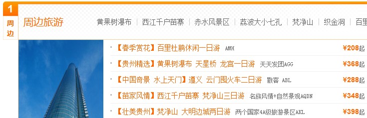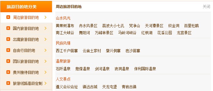 对于主导航、位置导航、次导航在旅游网站里要划分的清楚,让用户点击进入到网站里就可以一目了然的看到一些有点击性的内容,特别是首页的位置导航是用户普遍喜欢点击的内容,可以直接找到用户所要想看到的内容,上图是贵州旅游网站的主导航,从用户的角度分布了周边旅游、国内外旅游、出境旅游,签证,酒店,景点,租车,团购,攻略等,这些不仅给了用户想要的一面,也是吸引用户的一面。