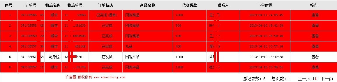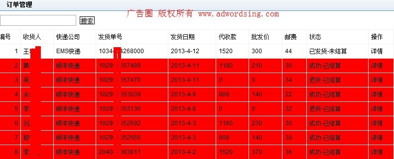OK,这边一共就是6单。最后还有5单在淘宝COD发货。总共差不多20单,投资回报率还是比较可观的。 另外还有一个可以肯定的是,这个产品肯定有回购的,因为这个产品我们做的是正品,质量效果都非常好,这也可以说是数据库重复销售的一个重要探索了。其中的拒签单子中,有两个单子确定是竞争对手下的,万恶的竞争,没办法。 总体来说,签收率还是相当高的。 今天给大家讲的就是这里了,希望大家能够从这里面学习到更多的技巧以及经验。广告圈强烈建议订阅我们的邮件列表,马上点击订阅! 同时我们开通了QQ交流8群,群号241865802,备注:广告圈。欢迎参与交流与学习。 希望大家在做竞价的时候,能够在广告圈的博文中学到更多的理念与经验,帮助你更好的成功。我们将持续的与你分享! 广告圈,版权所有!,转载请注明出处! (责任编辑:admin) |