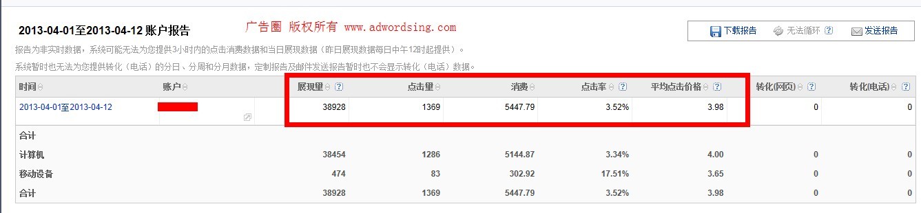 在前面的文章中,广告圈一如既往的为大家分享了关于一系列关于新手实战的操作经过。里面有很多值得大家去参考的因素,希望大家能够在实际操作中总结更多的经验!强烈建议你回看第二篇文章:”新手百度竞价操刀之二:为什么亏损“。对于这篇文章,我们依然用实战的方式进行分析与讲解! 项目产品主要是针对于女性的产品,点击单价维持在3.5--4块钱之间。 我们来看下在51啦里面的统计数据: