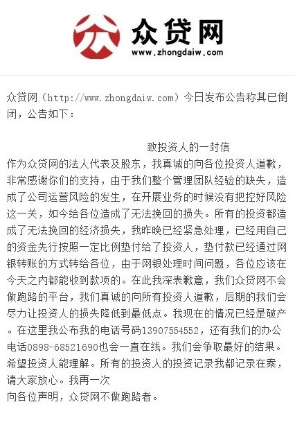 众贷网公告全文 关于众贷网,普通的投资者关心的无非是,那个叫卢儒化的创始人会不会跑路?P2P平台还能不能作为投资平台? 跑路的人的确有,但到目前为止,跑路的毕竟还是少数。哪个行业没有骗子?但不能因为个别骗子的存在,就把一个行业给否定了。但关于P2P平台自身的信用问题,我想说,如何去评价P2P平台的信用,现在还没有完善的方案,这个课题还需要深入的研究。P2P平台的出现,实际上就是民间借贷的网络化和阳光化,把原来半地下形式的民间借贷通过互联网的形式反而是公开化了。虽然传统的民间借贷也经常传出风险、坏账甚至是所谓的“高利贷崩盘”,但民间借贷体系生生不息,一直在为银行所不能覆盖的小微经济的发展提供宝贵的资金服务。如果传统的民间借贷每年吸纳几万亿的资金能生生不息的话,为什么更加公开化的P2P网贷行业就不能成为更好的借贷平台、更好的投资平台呢?答案是肯定的,当然关键还是要看从业者们怎么做。我相信,只要大部分从业者坚持诚信经营不欺诈的行业底线,市场竞争大浪淘沙,看不见的市场会优胜劣汰,优秀的公司会逐渐胜出。社会、媒体、政府、投资者也请放心,对于欺诈者,必将得到法律的严厉制裁。 很多人都在呼吁加强监管。对我们来说,监管的问题首先在于逐步建立适应这个行业发展的金融监管模式。对P2P借贷行业的监管,是以政府行政机构为主导呢?还是以市场自律为主导呢?我相信,央行、银监会是很谨慎的专业机构,即使要监管,也会严格依法监管。现在行业还很不成熟,这个方面的立法也不完善,即便是监管也难以措手。另外,对P2P肯定不能一刀切,如果把国内P2P全关掉,那也是不可能的事。发展互联网金融关系到国家的金融安全,如果不让本土企业去摸索、创新,等到美国或者其他国家发展出几家互联网金融的巨头来,甚至形成了事实上的行业标准,然后再把业务推到中国来,到那时,如果中国自己还没有成熟的企业与之竞争,那岂不以为着我们要把中国的互联网金融市场拱手让给美国?谁也负不起这个历史责任。虽然互联网金融的范畴远远大于P2P网贷,但P2P网贷确实是一个很好的切入点。互联网金融需要更新的思维,P2P网贷可以引入更多的非传统金融的从业者加入这个行业,从鼓励创新、鼓励试错的角度来说是好事。 最近,央行行长周小川仍然表示,互联网金融是国家鼓励发展的产业。至于具体怎么做,要靠企业自己创新。 到现在为止,国内的P2P模式到底是好是坏,谁也说不清楚。包括《创业家》杂志报道过的宜信和贷帮,两家公司也都一直在争议中前行。关于宜信,人们会质疑它的债权转让模式,怀疑唐宁这个“超级放贷人”角色是否可持续?至于贷帮的模式,业内也有很多人担心服务农村、城镇市场是不是太过理想化了?贷帮致力于为农村城镇化进程中勤劳创业的农户个体户解决“融资难”问题,通过互联网平台,把资金需求和投资需求连接在一起。这个方向我们会一直坚持,具体的操作模式我们还在不断试错,不断调整。我自己也不能说我们就已经掌握了所谓成功的模式,但可以肯定的是农村城镇化的小微金融是一个巨大的蓝海市场。 当然,我们也有必要消除一个误解,那就是认为互联网金融就是指P2P。要知道P2P只是互联网金融里很小的一部分,还有很多新业务、新模式在探索中。比如说,我最近参加的一个移动互联网的论坛上,就有人跟我说,他要用网贷的方式去做汽车按揭贷款。还有朋友在尝试互联网来解决物流行业代收款的金融问题;也有人在用互联网的方式来做仓单质押,借款人可以用存放在物流系统里的货物来贷款。这些都是创新的设想或者早期实践,具体能不能走出来,还需要时间来检验。互联网金融未来会形成一个以支付结算为底层、各种多样化的金融产品服务不同的细分市场,非常个性化的金融服务时代。我相信,在不久的移动互联网金融的时代,金融消费者既能得到可以媲美传统金融机构的安全可靠的金融服务,又能享受到非常个性化、人性化、用户体验非常友善的新型金融服务。来源:i黑马 (责任编辑:admin) |