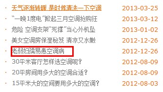 其实这样的网站布局多半是用户所不需要的导航,虽然用户来到我们网站根据这样的一个导航能够找到网站的各个页面,但是我们在内容上要给用户他们想要的内容才是最关键的,其实对于企业网站,特别是传统行业很多潜在的用户来到我们的网站主要想了解我们的产品详细参数、产品价格以及整个购买流程中会遇到的一些问题,至于后面的导航改如何布局你懂得。 B、网站内容建设,产品的添加和内容的添加是我们吸引搜索引擎蜘蛛来抓取的最关键的一项工作,但是很多企业站在更新内容的时候不是找不到内容来更新,就是为了更新而更新,完全不考虑用户是否想要这样的内容。下面是一个比较典型的例子,网站主要内容是讲空调维修,除了大部分介绍空调知识和维修知识,还放入不少跟空调维修没有关系的内容,如空调病和空调扇的知识,显然这种就是为了原创而原创的一篇内容。