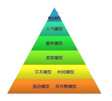 这个模型是个金字塔结构,底层大,顶层逐步收窄。收窄的逻辑是每一层的模型。例如类目模型在最底层,意思是你如果发布商品类目选错,