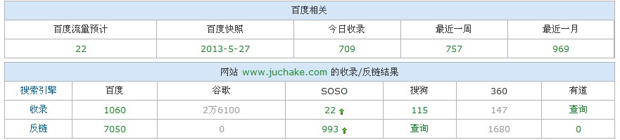 自从百度工具的推出以来,相信很多站长都开始在用百度工具,其中我们也能发现百度站长工具与其他站长工具的不同,下面笔者就以自己两个多月遇到的问题来跟大家分析交流下。 今天就以百度外链存在的问题与大家探讨下,百度站长工具推出后几天,聚茶客网站就在用百度外链工具,到今天已有两个多月了,很多站长也会发现,百度外链工具与其他站长工具的数据相差甚远,笔者用站长工具查询已有7050条外链。而用百度外链工具只有1332条外链,从下图可以看到数据的差距。