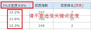 笔者以前在优化发电机组这个词,发现有个站点很多的相关关键词都排在首页较好位置。一年过去后,首页换了一些新面孔,但该站仍然排名坚挺。如果一个站短时间排名良好不能说明什么,但一个网站连续1年之久排在你前面,则说明该站做得足够优秀。下文,笔者来深度解析该网站的优化细节,并有哪些地方值得我们学习 一、人云亦云的关键词密度 关键词密度这个话题曾经误导很多人,该网站的部分词的密度如下所示。考虑到站长工具所展示的关键词密度,可能还不包含图片alt与title等中的词,这个密度事实上比图中的要大。